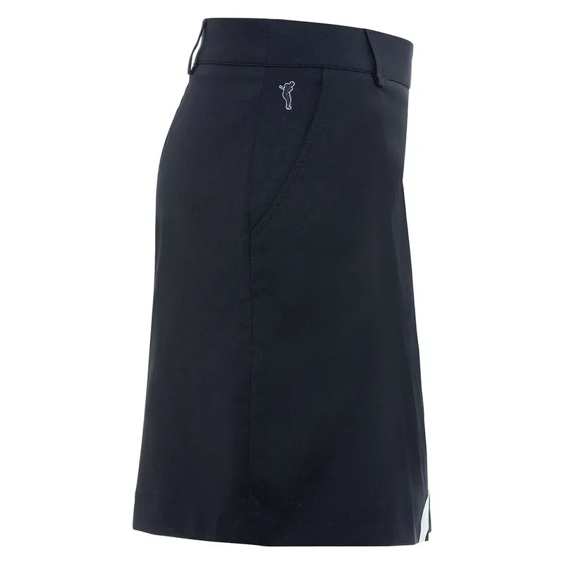 Summertime is here with this sporty mid-length GOLFINO golf skort that includes UV protection to keep you safe in the sun as you play golf. Complete with underlying shorts are simply buttoned to the skirt, which feels pleasantly soft against the skin. Allows plenty of freedom of movement thanks to the stretch content in the fabric, and side pockets offer plenty of room for golfing necessities. Highlighted by two stylishly eye-catching decorative stripes, and finished with an embroidered golfer logo and a ball marker attached to the waistband.